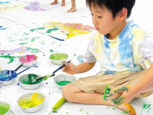 歌やピアノ、バイオリンの生演奏に合わせて感じたままに絵具を使って自由にアートを楽しみましょう。
