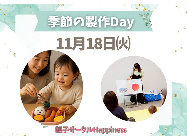 大型絵本を読んだり、手遊び・ふれあい遊びを親子で楽しんだ後に、季節の制作をみんなで作ります。