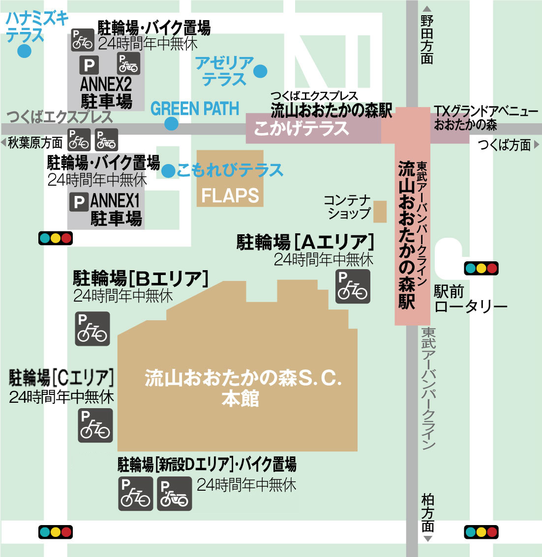 - 駐車無料サービス対象外施設:[TXグランドアベニューおおたかの森][こもれびテラス][アゼリアテラス]
