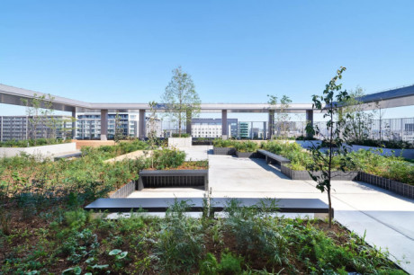 緑の豊かさを立体的に体感できる、ひな壇状の建築計画
