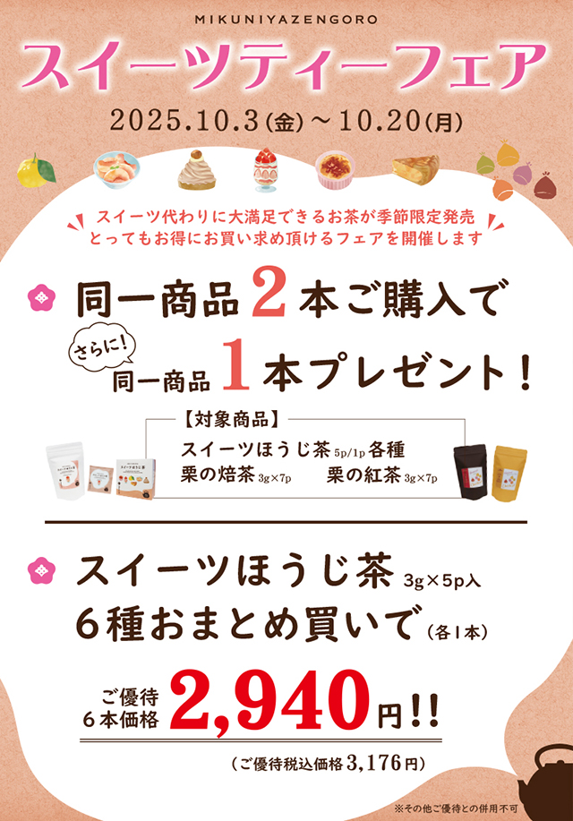秋の人気商品スイーツほうじ茶&栗の焙茶・栗の紅茶