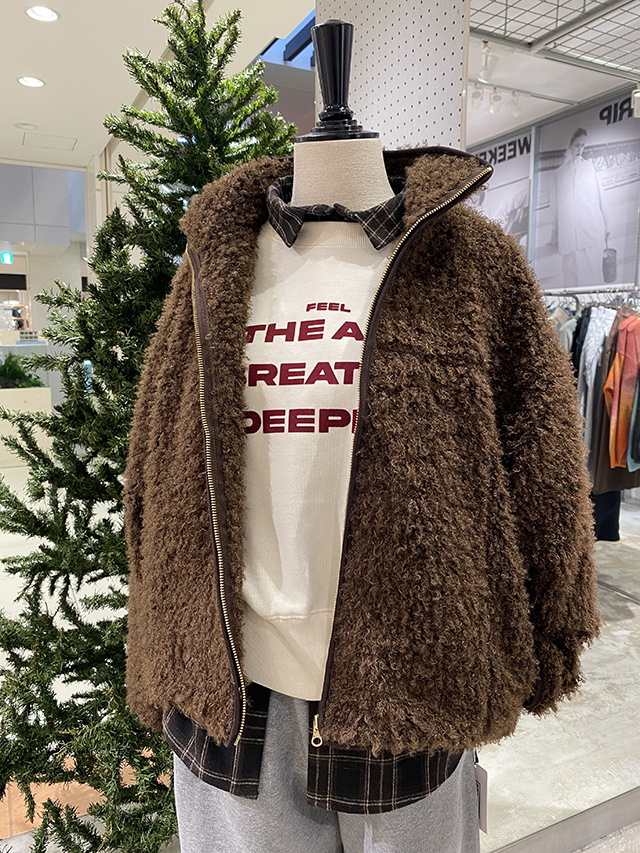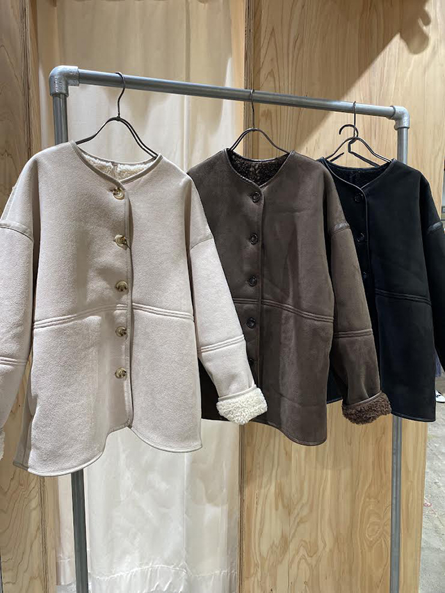 表地にムートン、裏地にボアを使用した暖かく軽い気心地のアウターです!