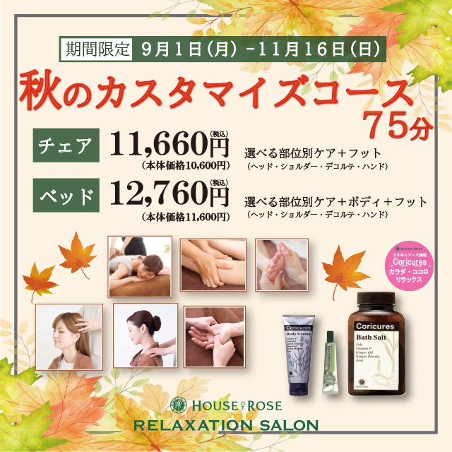 ☆期間限定「秋のカスタマイズコース」のご案内☆