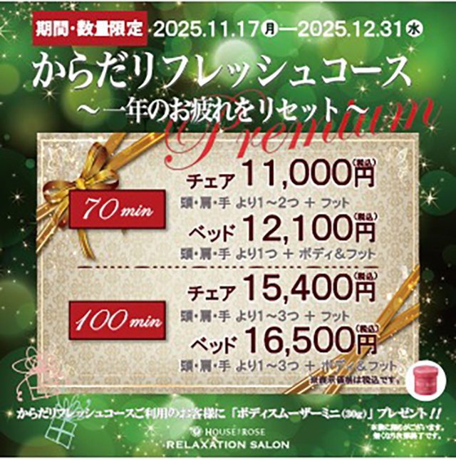 1年のお疲れをしっかりほぐす年末特別コース♪