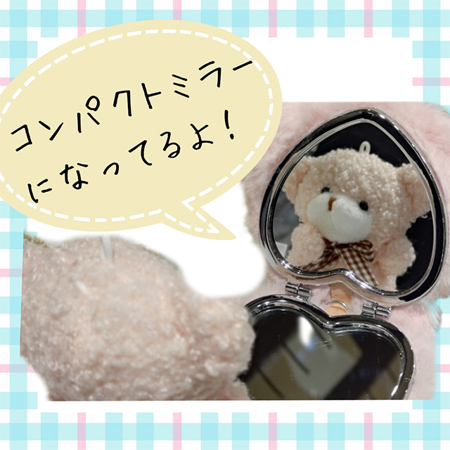 ハート型のコンパクトミラーが付いて、キュートで便利な仕様になっております☆