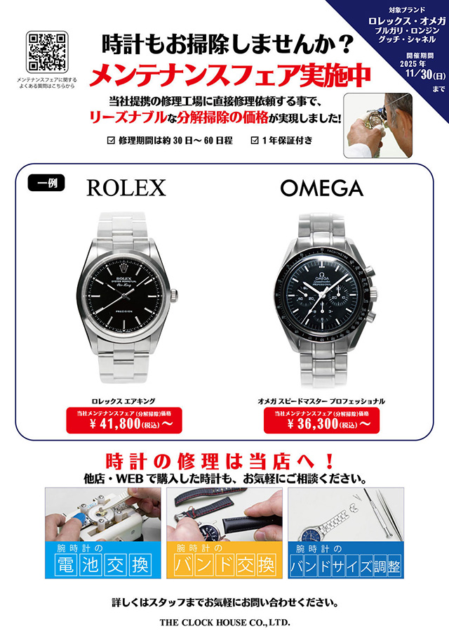 また他店でお求めの時計でも、電池交換からその他メンテナンスも承りますのでお気軽にお立ち寄りください。