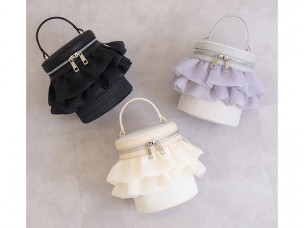 チェーンストラップ付属2WAY フリルバニティバッグ